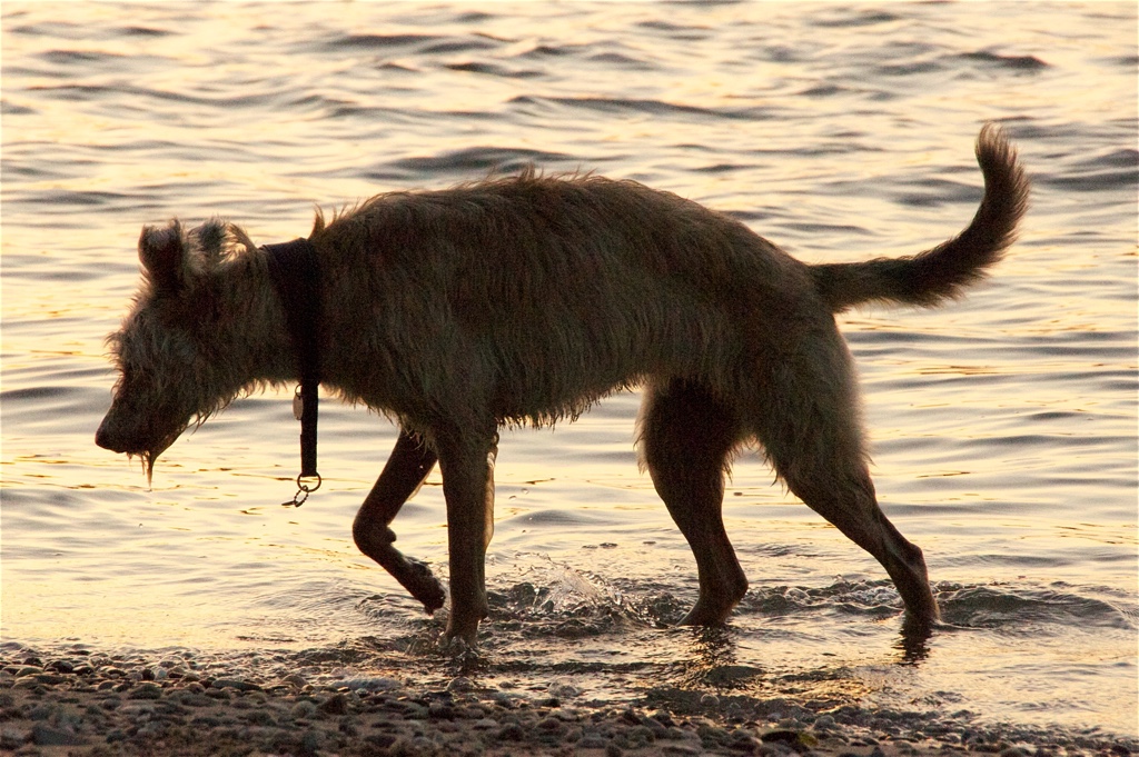 Wir hatten zwei Zelte nebeneinander und haben einfach nur eine wunderschöne Zeit verbracht. Rumtoben, chillen, wandern, grillen… Frauli war durch und durch entspannt. Ich war einfach nur verliebt. Die Woche ist wie im Flug vergangen und ich konnte es kaum glauben, als Frauli eines Tages wieder alles eingepackt hat. Zum Abschied haben Pepe und ich uns noch gemeinsam in totem und altem Fisch gewälzt, den wir am Ufer gefunden haben. Aber es nutzte nix, wir mussten uns trennen. 🙁 Endlos schade fand ich.
