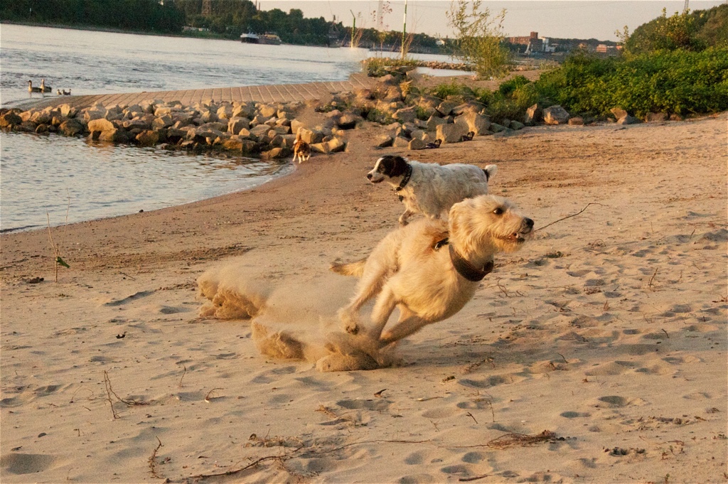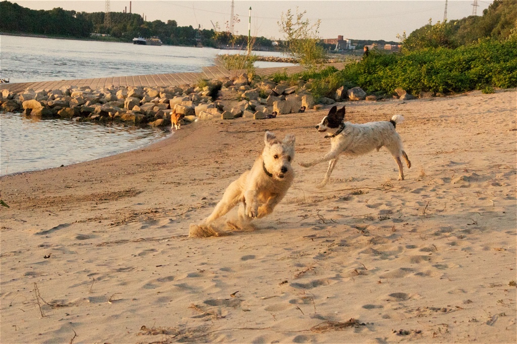 Jetzt haben wir die Gegend intensiv erschnüffelt. Toll! Ein Sandstrand, ein Fluss und eine tolle Spielwiese. So ließ es sich aushalten. Urlaub ist halt was feines.