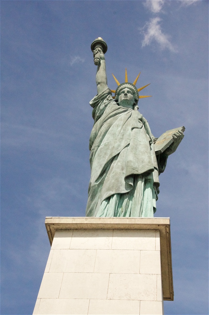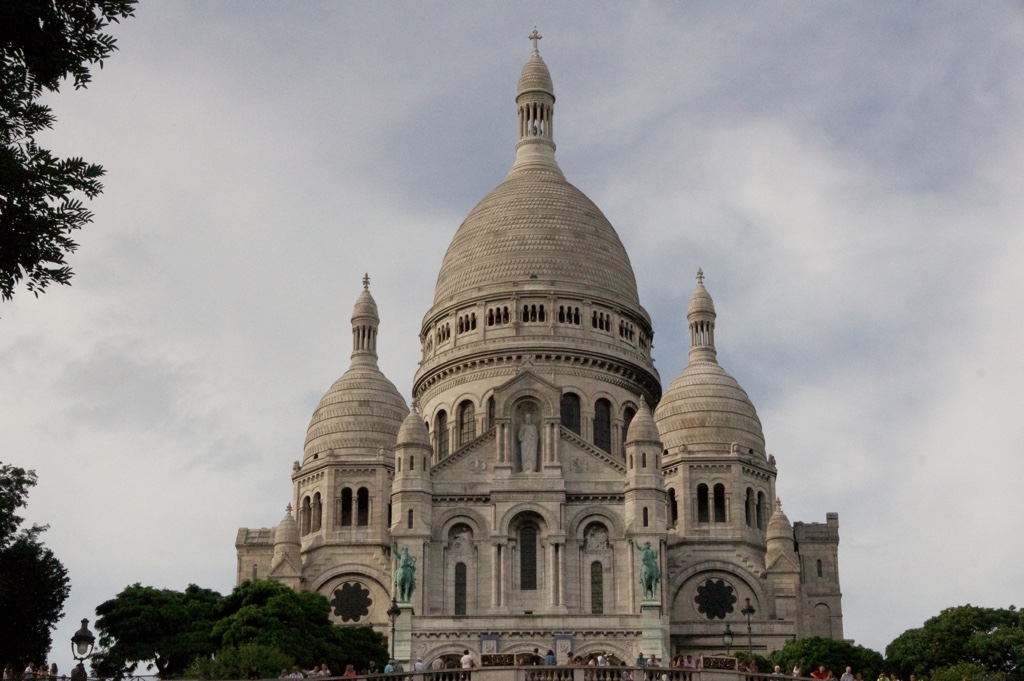 Eines der Ziele lag besonders hübsch an der Seine bzw. mitten drin und war eine kleine Freiheitsstatue (ich fand sie trotzdem schön groß), die angeblich eine große Schwester in New York hat. Da war ich aber noch nicht, deshalb kann ich das nicht bestätigen. Ach, ich quassel die ganze Zeit von der Seine, das ist ein Fluss, der mitten durch Paris fließt, nur zur Info. Weiter – dort war eine herrliche Allee und ich konnte doch tatsächlich ein bisschen ohne Leine rennen, weil da nämlich keine Auto fuhren und außer uns nicht viel los war. Echt klasse! Schließlich waren wir wirklich auf dem Weg zum letzten Ziel. Frauli hat mir zwar erklärt, was das für ein Teil ist, wo wir jetzt hin wollten, aber geschnallt hab ich es nicht. Eine Basilika namens „Sakre Kör de Monmartre… „okay… sie hat mir gesagt, dass die Franzosen das anders schreiben. Angeblich Sacre Coeur de Montmartre, aber warum sprechen sie es dann anders?? Seltsame Leute. Nunja, jedenfalls war es wieder ein Kirchendings, aber hey, das sah echt nett aus und der Park vorne dran war nicht zu verachten. Frauli ist mit mir tatsächlich sämtlich alle Stufen hochmarschiert. Das waren ganz schön viele. 😉