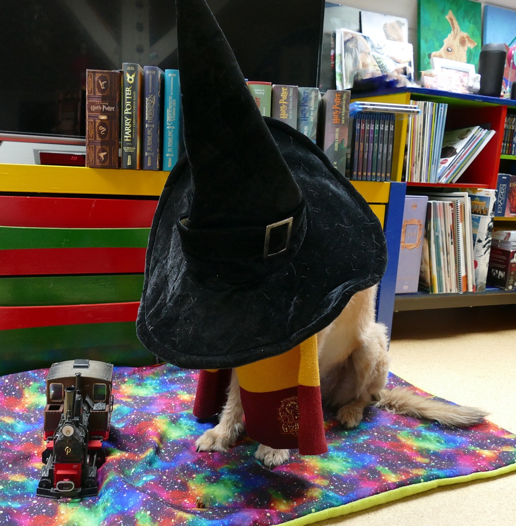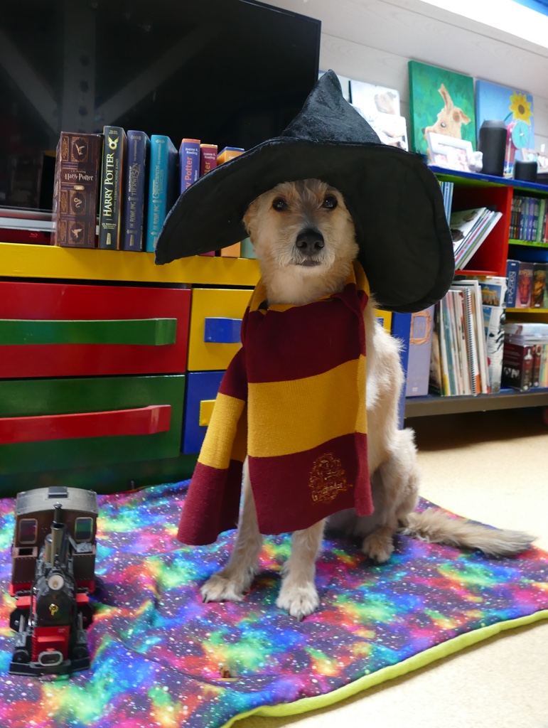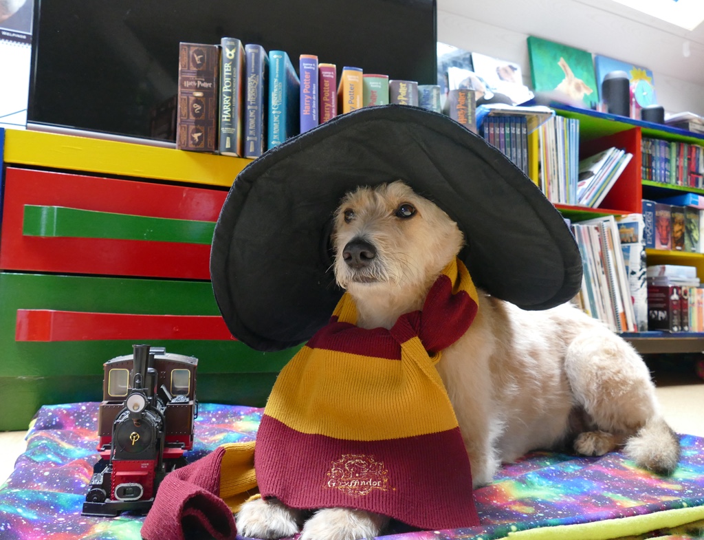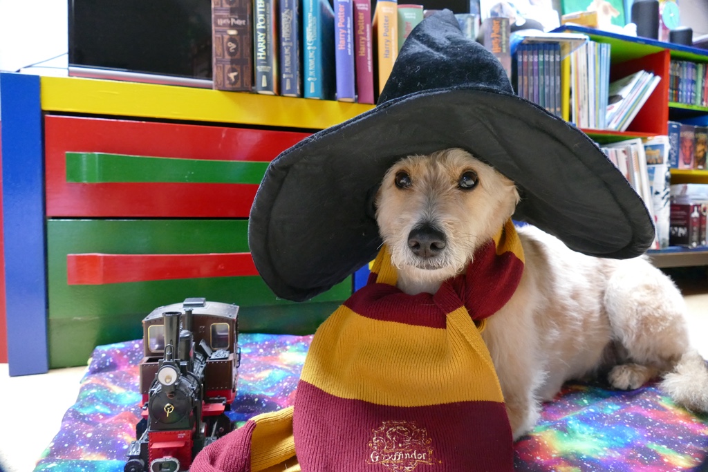 Als bekennender Harry Potter Fan muss hier natürlich am 1. September an den Beginn des neuen Schuljahres und die Fahrt im Hogwarts-Express erinnert werden. Da Frauli zu alt ist, darf ich nach Hogwarts. Ich weiß nicht, wie viele Hunde dort außer mir noch Zauberei lernen, aber ich habe sicher viel Spaß. Was ich nämlich aus den Filmen und Büchern weiß, ist dass dort einige Katzen leben und ich bestimmt auch die eine oder andere Eule jagen kann. 🙂