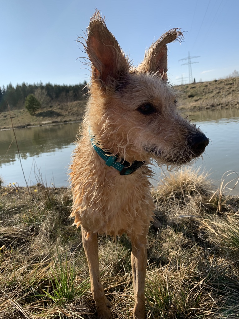 Im Seechen wohnt eine Bisamratte, aber die habe ich nur zweimal gesehen. Meistens hat sie sich versteckt. Wahrscheinlich mochte sie mich nicht, weil ich immer in ihrem See geschwommen bin. Aber den Pfotenspuren nach zu urteilen, war ich nicht der einzige Hund, der dort die Erfrischung gesucht hat. Da waren nämlich echt viele Spuren und hin und wieder auch ein Haufen. Das fand ich jetzt blöd, den hätte man ja wegräumen können. Ich scheiß doch auch nicht an den Strand. Tsss….