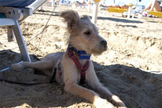 Ende Mai/Anfang Juni 2012 habe ich im zarten Alter von 4 Monaten den Strand erobert. Frauli wollte ursprünglich mit ihrer Familie und Rocky in den Urlaub fahren. Das war schon lange geplant – schon vor meiner Geburt. Aber Rocky wurde krank und war vor Urlaubsbeginn schon gestorben und ich war da. Klein und irgendwie noch sehr neu… Aber Frauli hat gesagt, dass ich das sicher ganz toll hinkriege. Also hat sie mich mit genommen. Schön, gell? Italien war unser Ziel. In Igea Marina waren Frauli und ihre Familie schon öfter und in dem Hotel waren Hunde kein Problem. Sie war einige Jahre zuvor mit Rocky dort und bei einer ersten Anfrage hieß es sofort, dass Hunde herzlich willkommen sind.