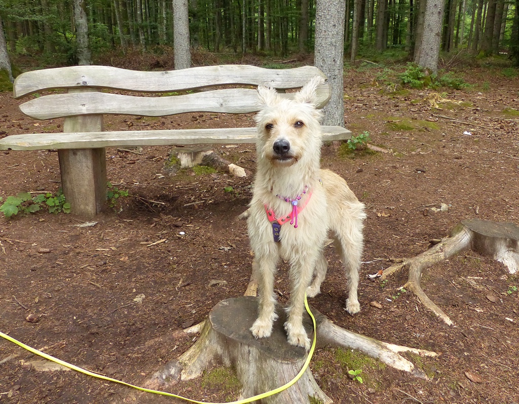 Man (frau auch) kann sich hervorragend von seinem Hund dorthin ziehen lassen, wo der Hund hin möchte, ohne dass dieser ständig in Angst lebt, wohin sein Mensch denn nun schon wieder abgeblieben ist. Besonders toll ist das kleine „Zugpferd“, wenn es bergauf geht. So ein Hund entwickelt ganz schön Kraft. Dann aber bitte daran denken, dass die Leine am Geschirr befestigt wird, da sonst die ganze Last des hinterhergezogenen Menschen am Hals hängt.