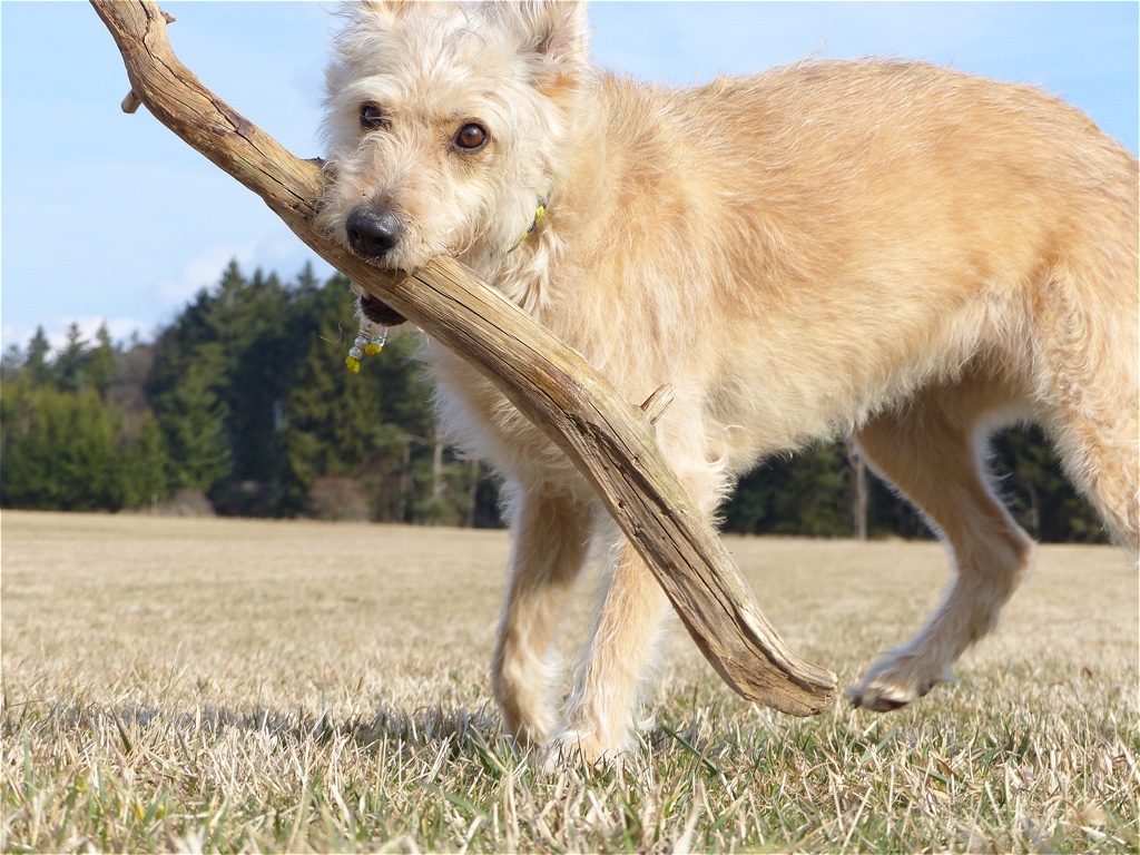 Der Schnee blieb uns im Februar erhalten und es wurde in der ersten Februarwoche bitterkalt. Große Gassirunden waren aufgrund der Kälte gar nicht möglich, da ich einfach nicht laufen wollte. Mein leidiges Problem Analdrüse ließ etwas nach, aber los waren wir es noch lange nicht. Frauli war ratlos und hat viel probiert. Die Lösung haben wir aber noch nicht gefunden. Nur eine der Ursachen wurde gefunden. Da ich durch das Preybarf total übersäuert war und rohes Fleisch nicht mehr wirklich vertragen habe, hat Frauli das experimentieren angefangen. Trockenfutter, Dose, selbst gekocht. Irgendwie hat nix die Erfüllung gebracht. Aber das konnte ich besser verdauen und allmählich wurde es besser. Wir haben einen Futtertest mitgemacht, wurden für den Liebster Award nominiert und hatten jede Menge Spaß. Ab Mitte Februar war es quasi über Nacht Frühling und wir konnten wieder große Runden drehen, es war einfach wunderbar!