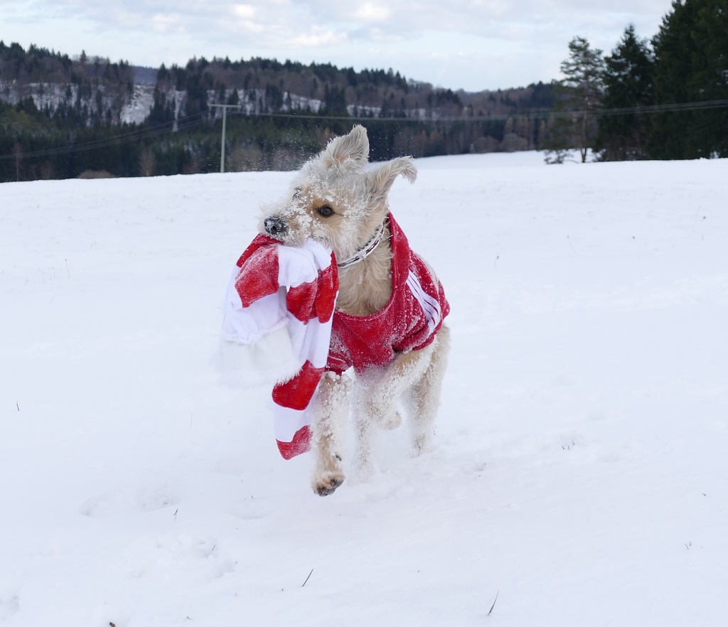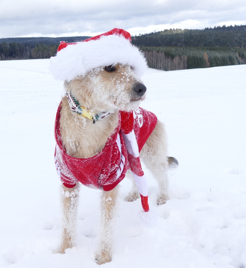 Yay! Dezember! Wichtelzeit! Weihnachtszeit! Backzeit. Frauli hat nämlich Kekse für mich gebacken. Mjami! Sooo lecker. Ganz im Gegenteil zu den Vorjahren hat es im Dezember früh geschneit und der Schnee blieb sogar eine ganze Weile liegen. Für weiße Weihnachten hat es nicht ganz gereicht, aber fast. Dafür hab ich davor den Schnee ausgenutzt und bin eifrig rumgetollt. Beim Adventskalender habe ich auch mitgemacht und es gab tolle Preise zu gewinnen. Wir haben fleißig gewichtelt und wurden reich beschenkt. Außer unseren wirklich großartigen Wichteln, haben wir auch von Sabrina (Dietutnichts) und Nicole (Moe&Me) Weihnachtsgeschenke bekommen und zwar so tolle, dass Frauli erstmal ganz sprachlos war. Uns erreichten jede Menge Weihnachtskarten und wir haben viele Karten geschrieben. Zwei überraschende Pakete aus dem Twitterspektrum erreichten uns kurz vor Weihnachten und Frauli war total begeistert und hat schon gesagt, dass sie sich eine tolle Überraschung für beide einfallen lässt.