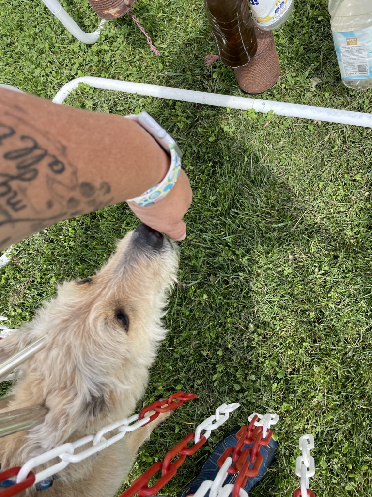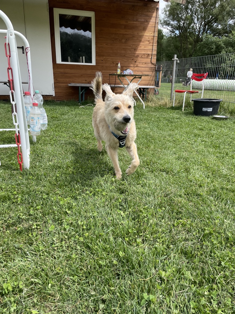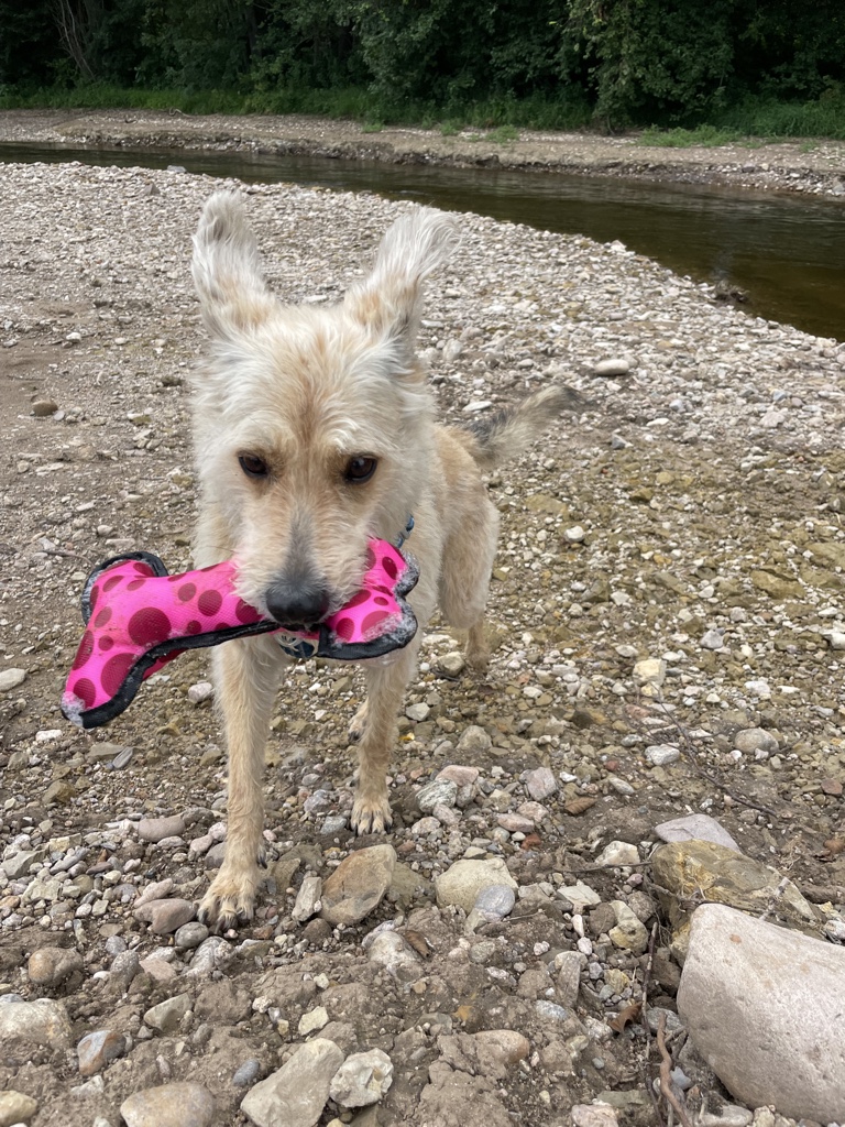 Am Wochenende waren Frauli und ich auf dem Hundeplatz und Frauli hat mit mir ein bisschen getrickst, sich mit ihren Freunden dort ausgiebig unterhalten. *seufz* Und am Fluss waren wir natürlich auch wieder. Der wird ständig neu gestaltet und irgendwie muss ich jedes mal aufs Neue testen, wo ich jetzt gut schwimmen kann und wo ich nicht mehr über die Kante komme. Das sieht manchmal so harmlos aus und dann *schwupp* sind die Pfoten weg und ich bin 10 m weiter weg… aber raus kommt man immer wieder und der Fluss hat auch ganz ruhige Abschnitte, wo ich toll schwimmen kann.