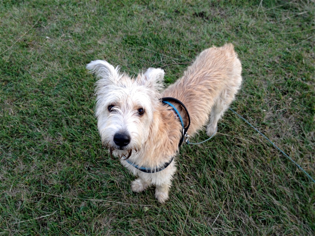 Im Garten war es sicher und dort durfte ich rumtoben, soviel ich wollte. Frauli immer mit dem Knipsding, Leckerchen und einem Ball dabei. Ach und das Klickteil… immer wenn ich was gemacht habe, was ihr gefiel, hat sie geklickt. Das hab ich schnell spitzgekriegt. Es gab immer nach dem Klick was leckeres zum Futtern. Das Klickteil war nun auch beim Gassi ein ständiger Begleiter und immer wieder – meistens wenn ich was erkundet habe – kam der Klick. Oh, wie ich mich gefreut habe.