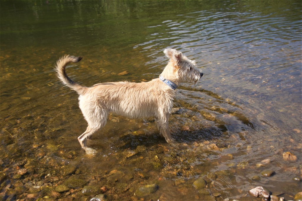 Hund kann es kaum glauben, aber ich wollte anfangs tatsächlich nicht schwimmen. Klar, bin ich auch ins Wasser und hab rumgetollt, aber geschwommen bin ich nicht. Das war echt gruselig für mich, wenn ich den Boden unter den Pfoten verloren habe. Ich hab tatsächlich über ein Jahr gebraucht, bis ich dann schwimmen gegangen bin.