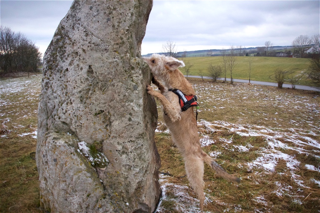 Leider hat sie sich schon vor Weihnachten verletzt und den Meniskus am Knie abgerissen. Aber Frauli hat irgendwie keine Lust gehabt, zum Arzt zu gehen oder vielleicht hatte sie auch Angst davor. Jedenfalls humpelte sie mal mehr, mal weniger… Die Runden wurden teilweise kleiner oder Frauli blieb halt einfach irgendwo mal sitzen und wir schlichen… schlichen … schlichen heim…