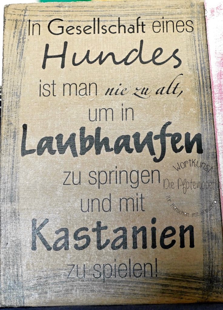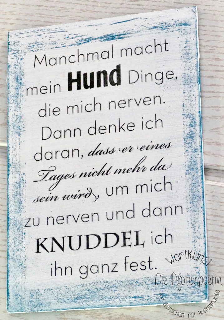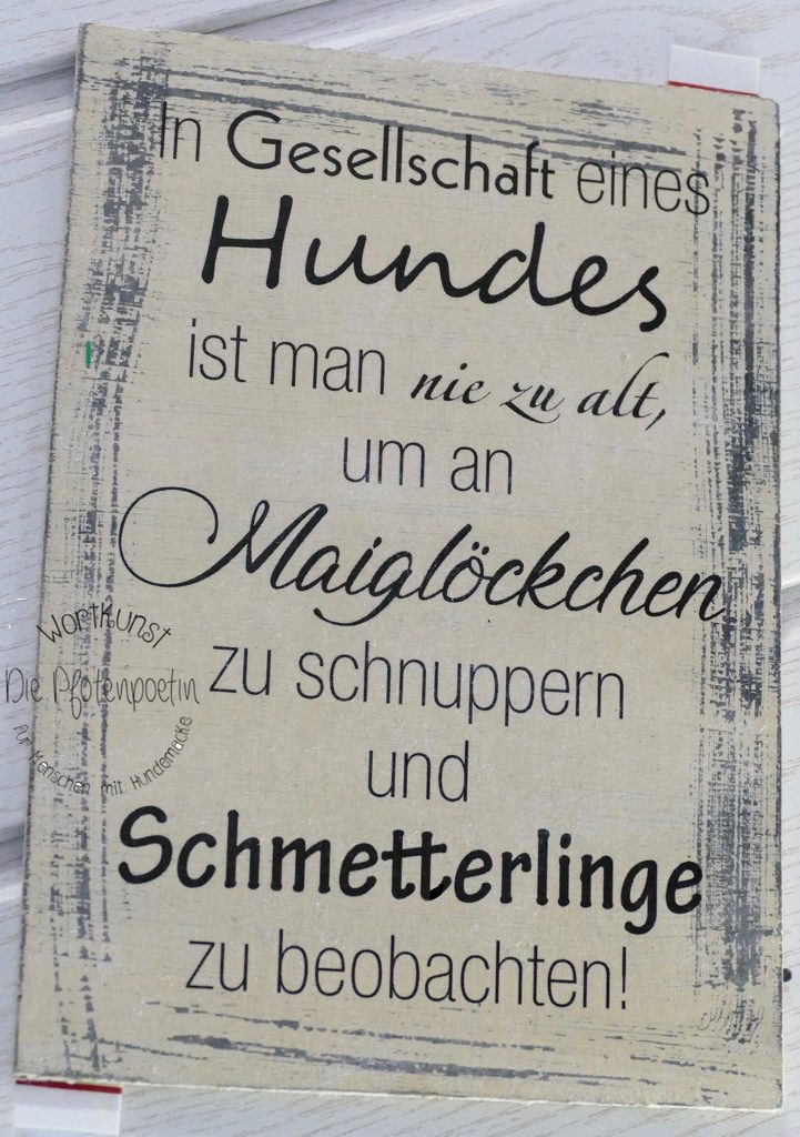 Vorneweg gleich mal das wichtigste: Ich liebe witzige, emotionale oder ironische Sprüche! Also trifft Die Pfotenpoetin bei mir mitten ins Herz. Nun noch schnell eine Warnung! Ich übernehme keinerlei Haftung für einen eventuell ausgelösten Kaufrausch und die möglicherweise nachhaltigen Folgen auf dem Konto nach Klicken auf den Link. Da ich selber schon eine stattliche Sammlung mein Eigen nenne, hat es mich umso mehr gefreut, als Nadine mich gefragt hat, ob ich nicht gerne einen kleinen Produkttest schreiben möchte. Selbstverständlich!! Ich liebe die Schilder und hätte am Liebsten alle. So kam ich in den Genuss ein Schild meiner Wahl aussuchen zu dürfen. Dieses hier nämlich: