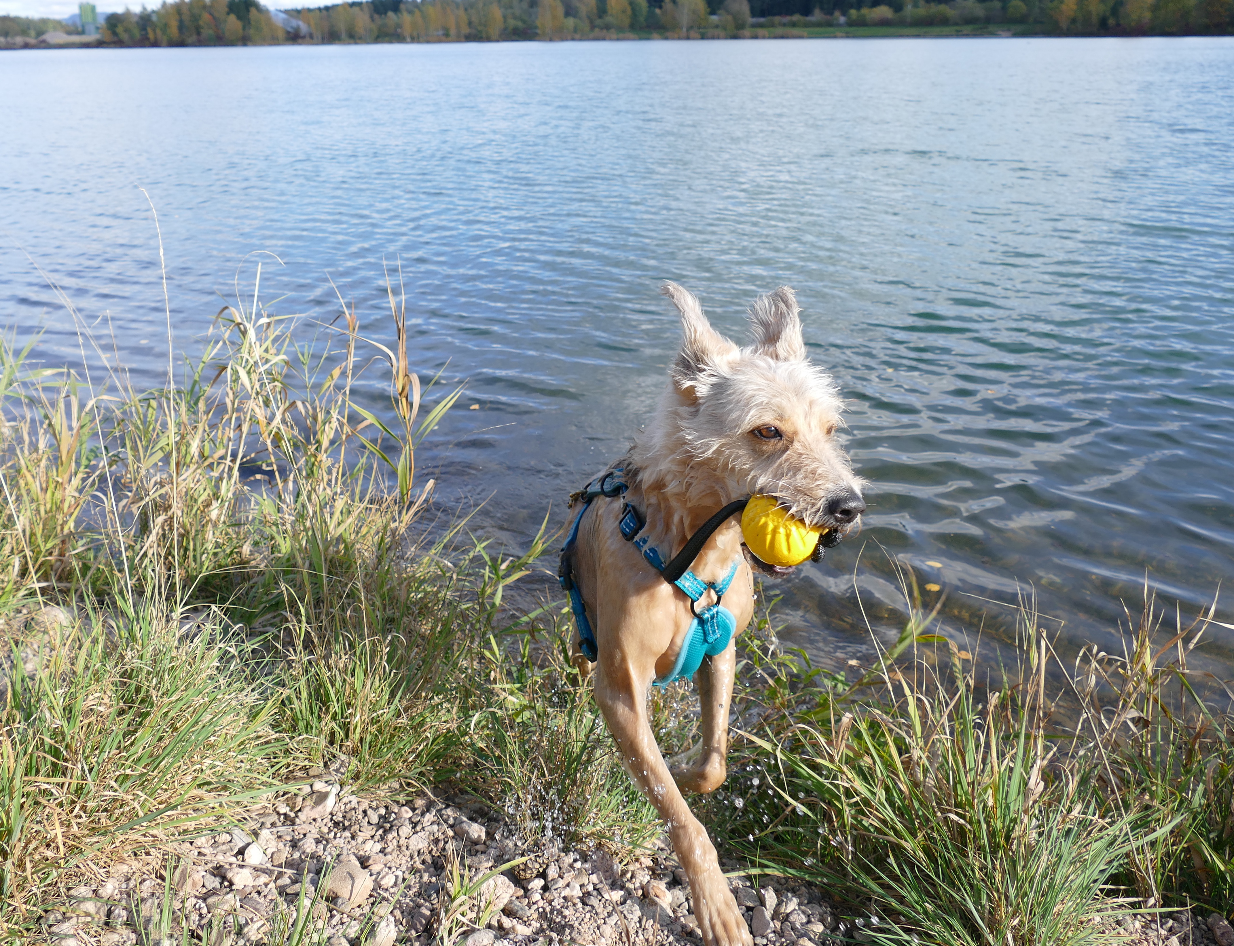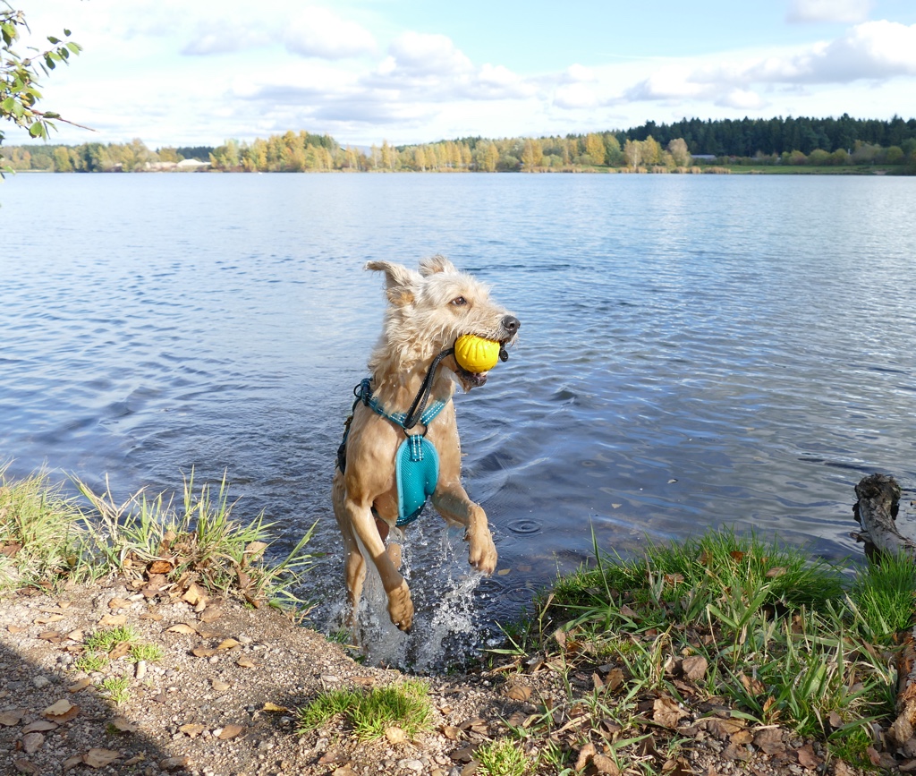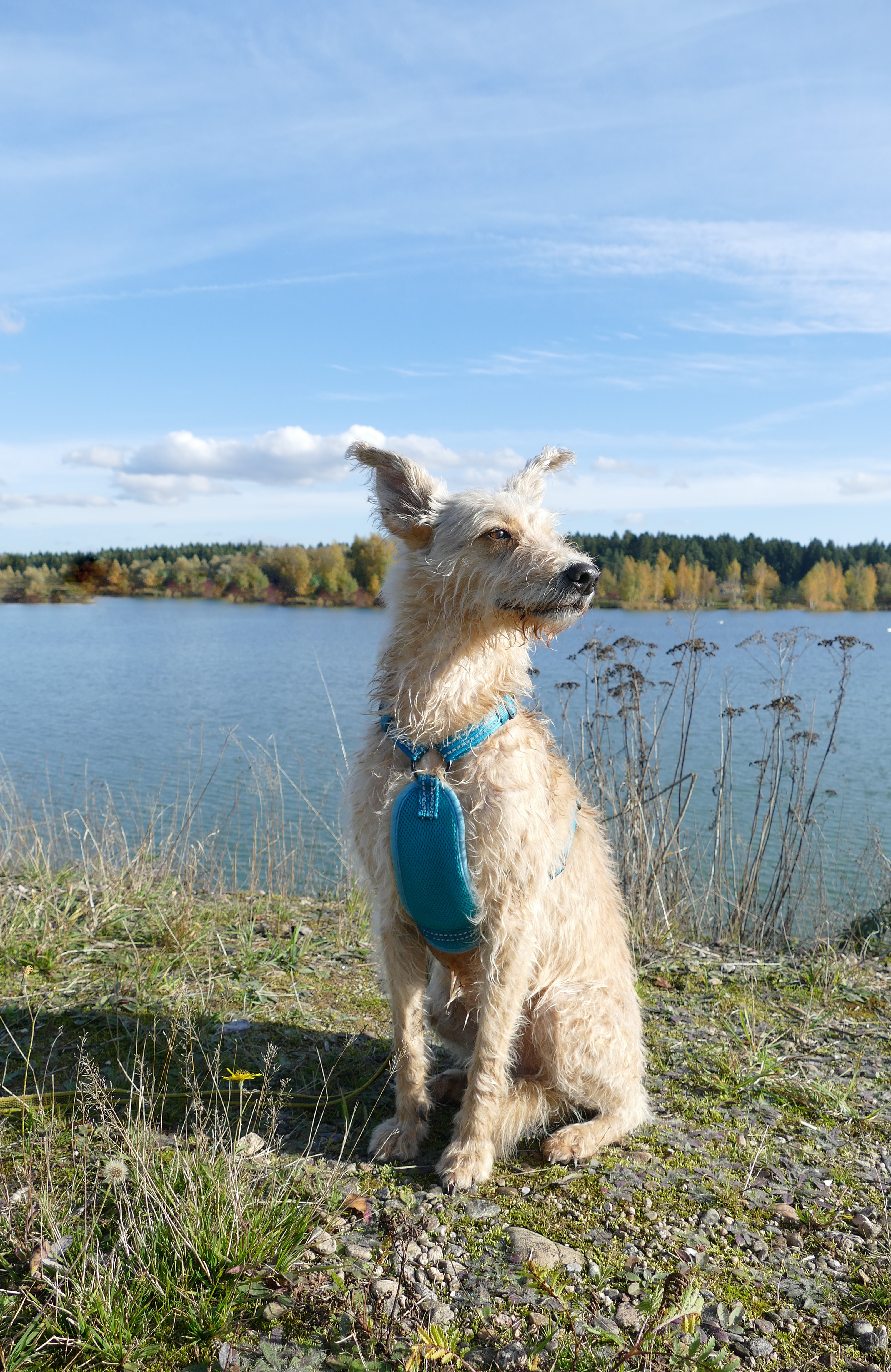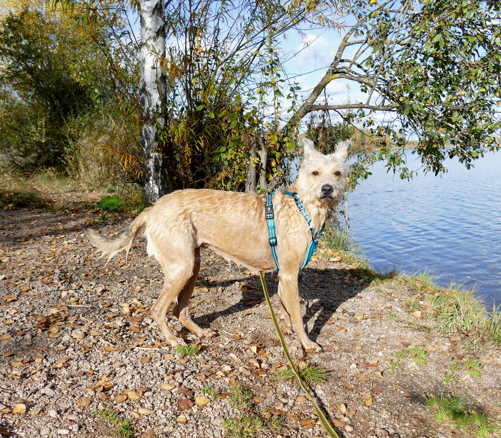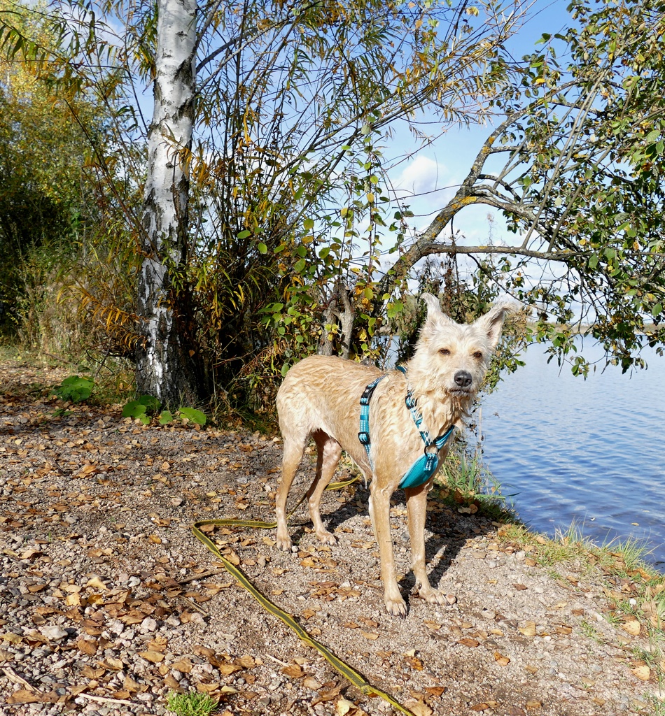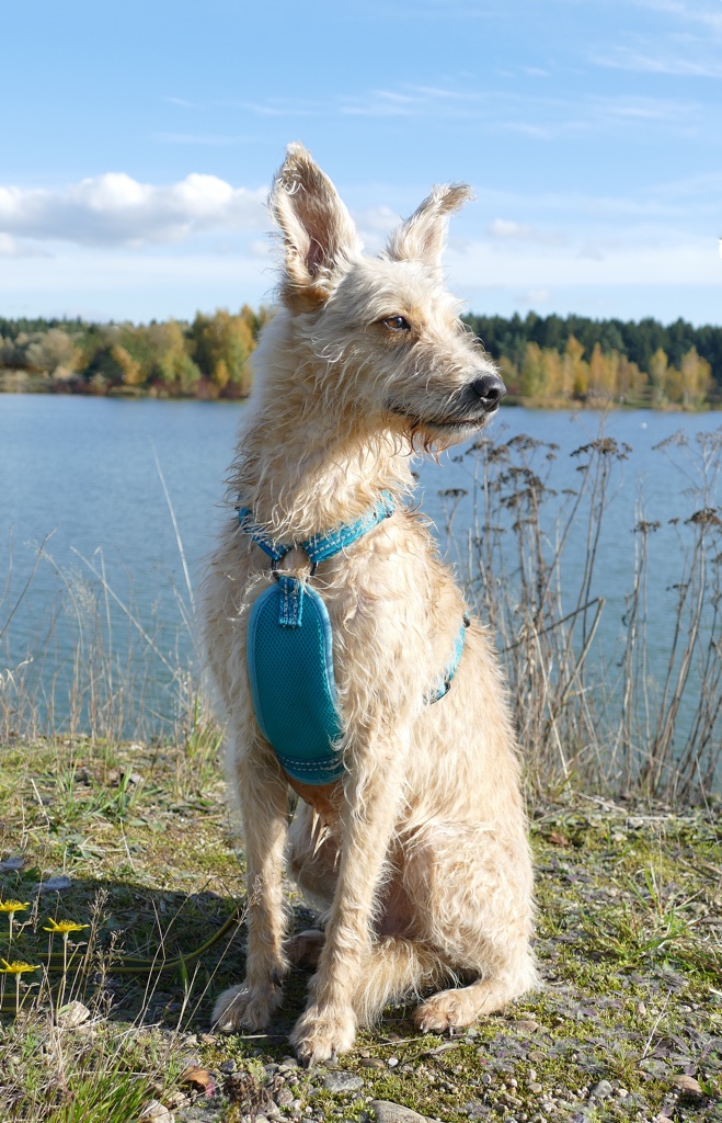 Ich hatte durchblicken lassen, dass mich die Geschirre auch interessieren, da sich um Shivas Astralkörper gerne die Geschirre drehen, als wäre es ne Zentrifuge. Sobald die Schleppleine schleift, dreht sich das Geschirr zur Seite. Das nervt und wenn es so schief hängt, ist es auch nicht mehr so optimal vom Sitz. Also hab ich ständig ein neues am Start und bin jedes Mal aufs Neue enttäuscht, wenn es halt mal so gar nicht hält, was versprochen wird. Dementsprechend misstrauisch bin ich nun gegenüber Geschirren, dabei verwende ich sie echt gerne, da ich Shiva häufig an der Schleppleine habe und meine Eltern grundsätzlich nur mit Geschirr Gassi gehen.