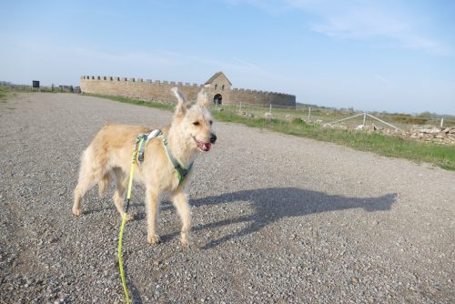 Aber ich habe einen Schlenker zur Burg Eketorp gemacht und dort natürlich auch mit Shiva das drumherum erkundet. Ich muss aber gestehen, dass ich ganz schön erledigt war und Shiva war auch recht unmotiviert. Also hab ich es uns beiden erspart, dass wir auf die Burgmauer kraxeln, um die Aussicht zu genießen. Eine heiße Dusche und was leckeres zu Essen fanden wir beide (okay, die Dusche nur ich) wesentlich attraktiver.