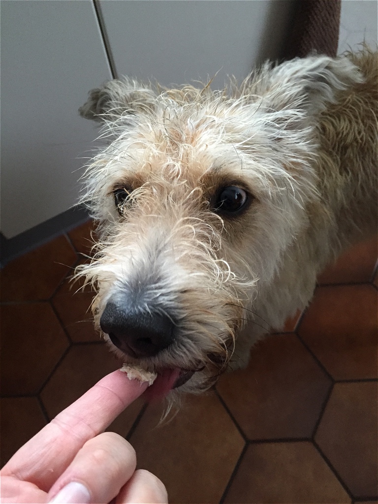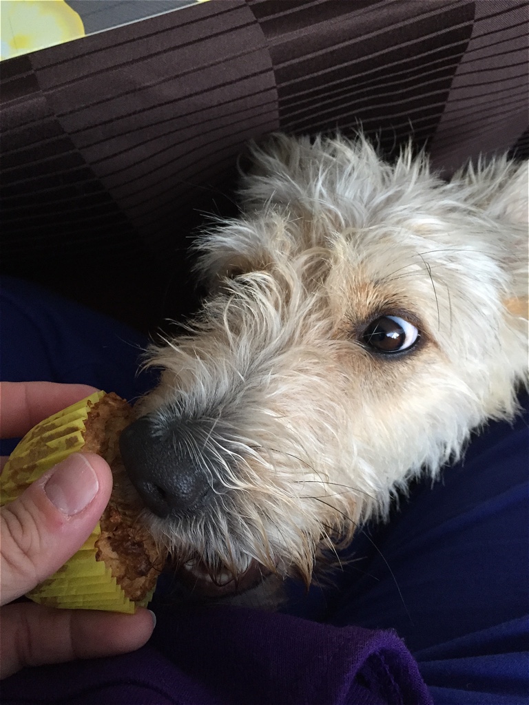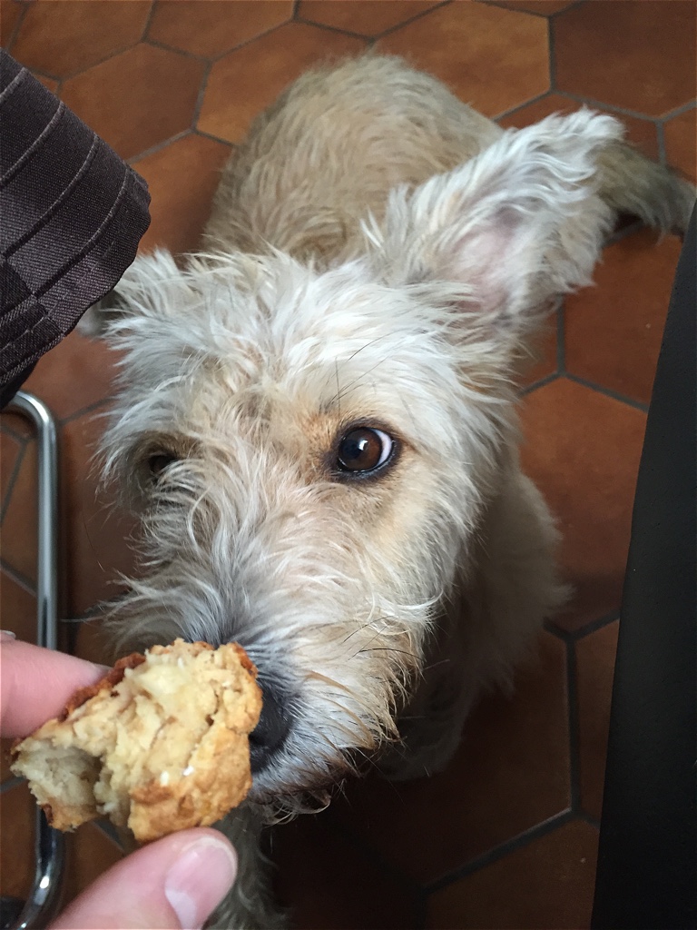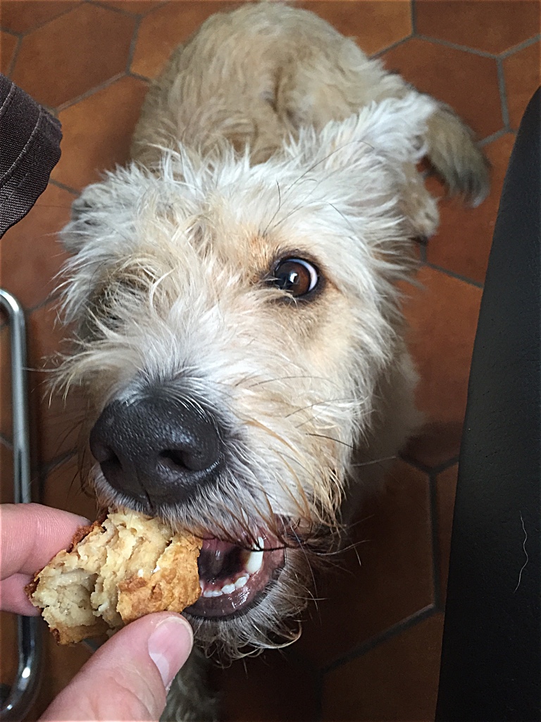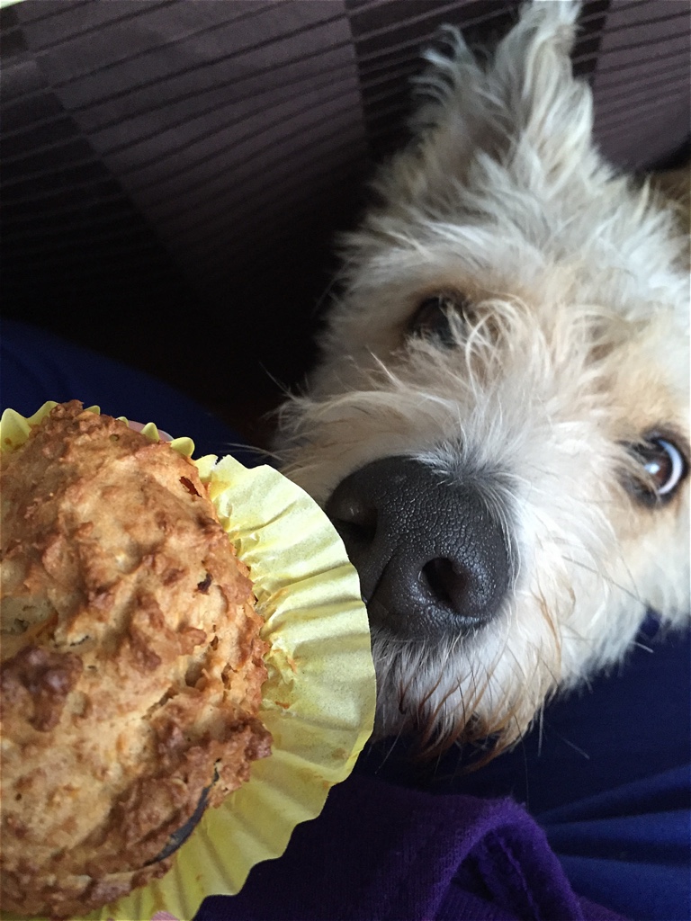 Sabberflecken vom Boden wischen und die Muffins in so ca. 5 Tagen verfüttern. Länger halten sie leider nicht.  Also werden Shivas Freunde immer reich beschenkt. 😉