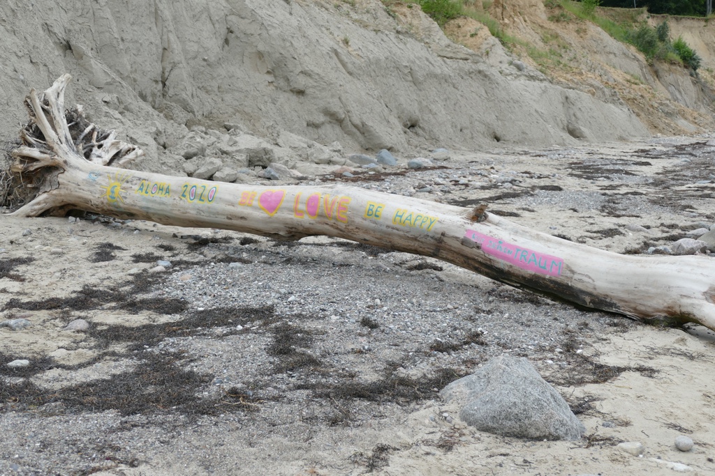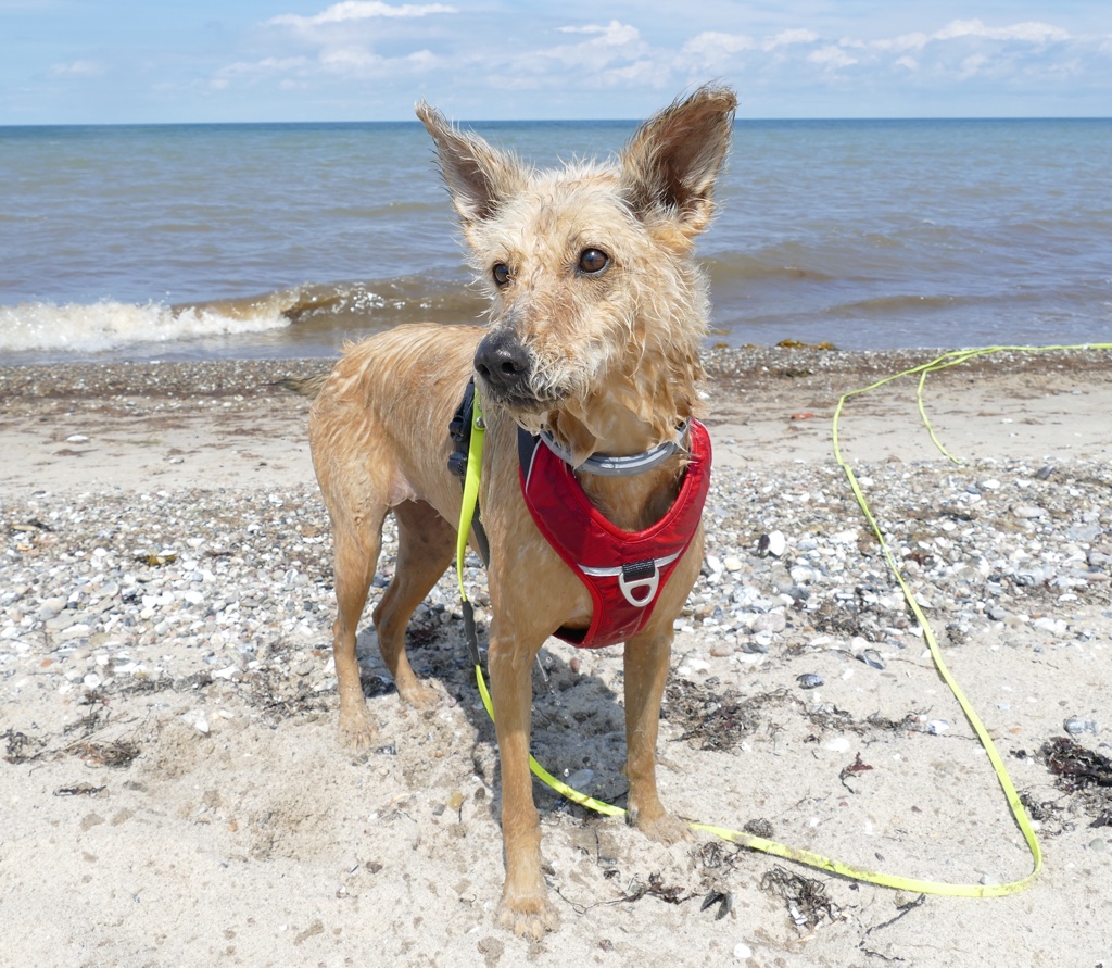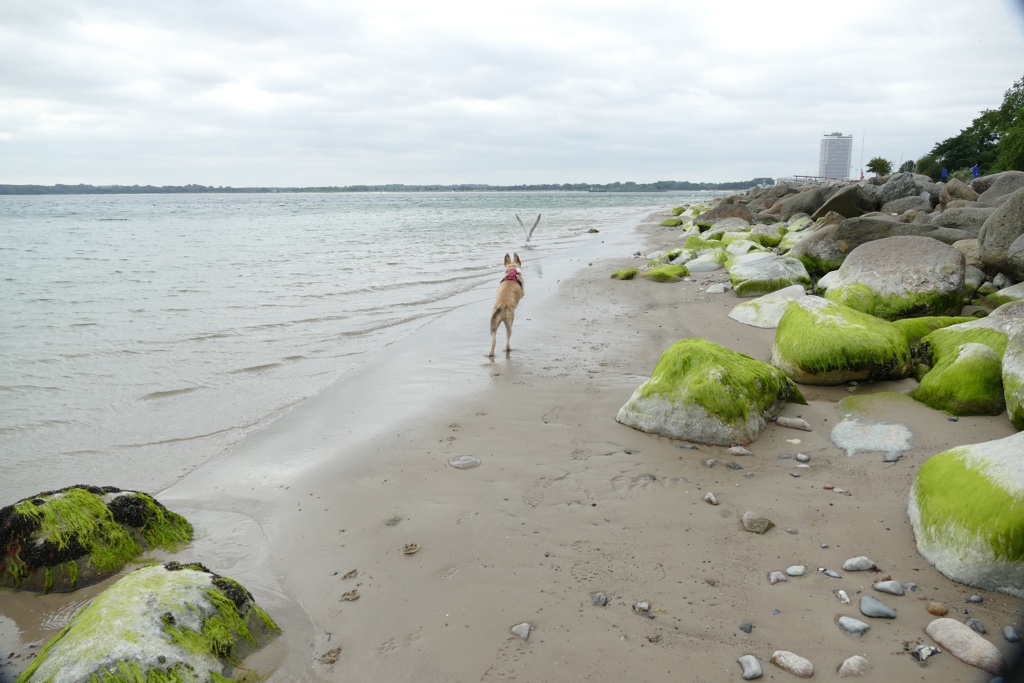 Am nächsten Morgen ging es einigermaßen früh wieder zum toten Gleis und dann sind Frauli und ich nach Grömitz gefahren. Aber oh Graus! Auf dem Küstenweg war so viel los, dass ich nach den ersten 200 Metern ein komplettes Nervenbündel war. Es kamen Radfahrer, Fußgänger, Kinder, Hunde, Autos… Das war die reinste Völkerwanderung. Von irgendwelchen Abständen hatte auch noch niemand was gehört und ich hätte über kurz oder lang jemanden gefressen, der mir zu Nahe gekommen wäre. Also hat Frauli einen Trampelpfad genutzt und ist zum Strand runter. Nur auf den ersten paar Metern war noch viel los und dann… wir waren so gut wie alleine. Herrlich!
