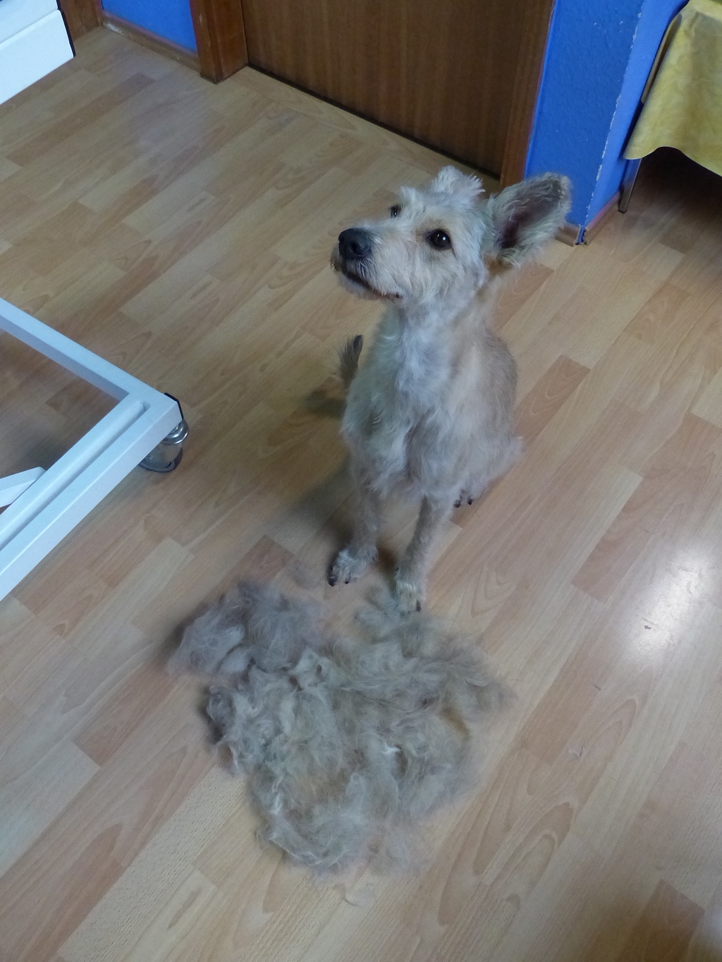 Das Hundefell ist sowieso perfekt gelungen. Jeder hat sein eigenes unverwechselbares. Die Struktur ist einfach super durchdacht. Das einzige Problem ist, dass wir manchmal in der falschen Klimazone leben, aber auch damit arrangieren wir uns perfekt. Dann wird einfach dementsprechend mehr Fell abgeschmissen (z.B. ein Husky im Sommer) oder wir produzieren mehr Fell im Winter und wärmen uns an unseren Zweibeinern auf. Ja, manchmal ist es nötig, dass wir mit Mäntelchen etc. ausstaffiert werden. Aber bitte sportlich elegant und zur Gesamterscheinung passend und nicht mit Rüschchen und Schleifchen als wandelnder Dekoartikel. Achso, das Fell ist super, weil es nämlich alles mit macht. Im Sommer speichert es die Feuchtigkeit und gibt sie langsam ab, so dass wir uns herrlich abkühlen können. Im Winter können wir uns den kalten Schnee vom Pelz halten und Wärme speichern. Wunderbar. Außerdem kleidet es uns perfekt. Mal peppen wir es ja mit etwas Naturelementen auf, also Sand, Erde, Hinterlassenschaften, Zweigen, Blättern etc.. Ganz elegant ist die Kombination aus allem, garniert mit einer schönen Duftnote. Hach… leider wird so eine Komposition oft von Frauli und ihrem mangelnden Gespür für wahre Schönheit durch eine schnöde Dusche zerstört, aber sonst…. perfekt! Ich sag doch: Wunderwerk.