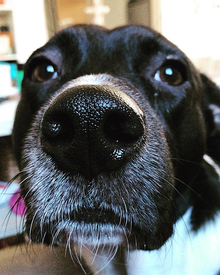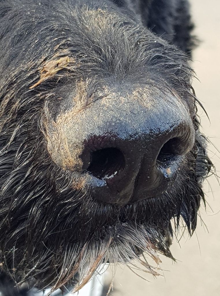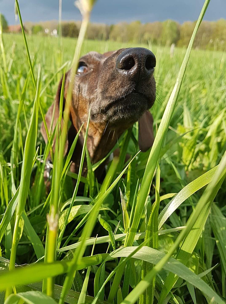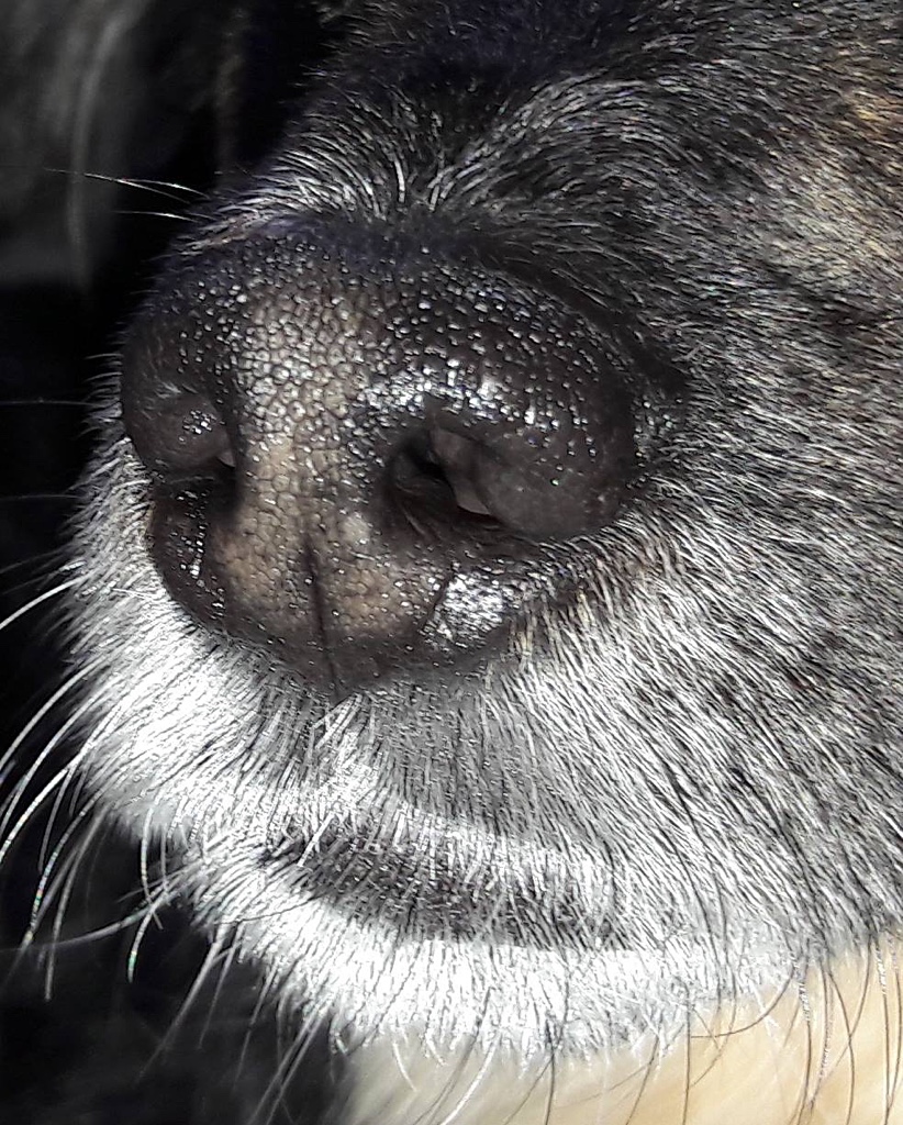 Ausgestattet mit einer supertollen Nase schnüffelt sich der Vierbeiner durch das Leben. Je nach Rasse haben wir zwischen 125 Millionen und 220 Millionen Riechzellen (im Vergleich kommt der Mensch mit seinen grade mal 5 Millionen Riechzellen sehr lahm daher). Die Nase eignet sich hervorragend, um Fährten zu folgen, das Essen des nächsten Zweibeins einer genauen Prüfung zu unterziehen oder Nachrichten zu lesen. Ja, wir Hunde haben auch ein Facebook und da ein Geruch 1000000 mal mehr sagt, als ein Wort, sind wir eindeutig im Vorteil. Wir können Krankheiten riechen, erschnüffeln verschwundene Menschen oder Hunde und sind auch in der Lage tief verbuddelte Leichen oder teilweise noch lebende Zweibeiner im Schnee oder unter Wasser aufzuspüren. Wir sind sogar einzigartig befähigt Krebs oder Diabetes zu wittern und können auch einen veränderten Blutzuckerspiegel riechen. Ich sag doch: Wunderwerk.