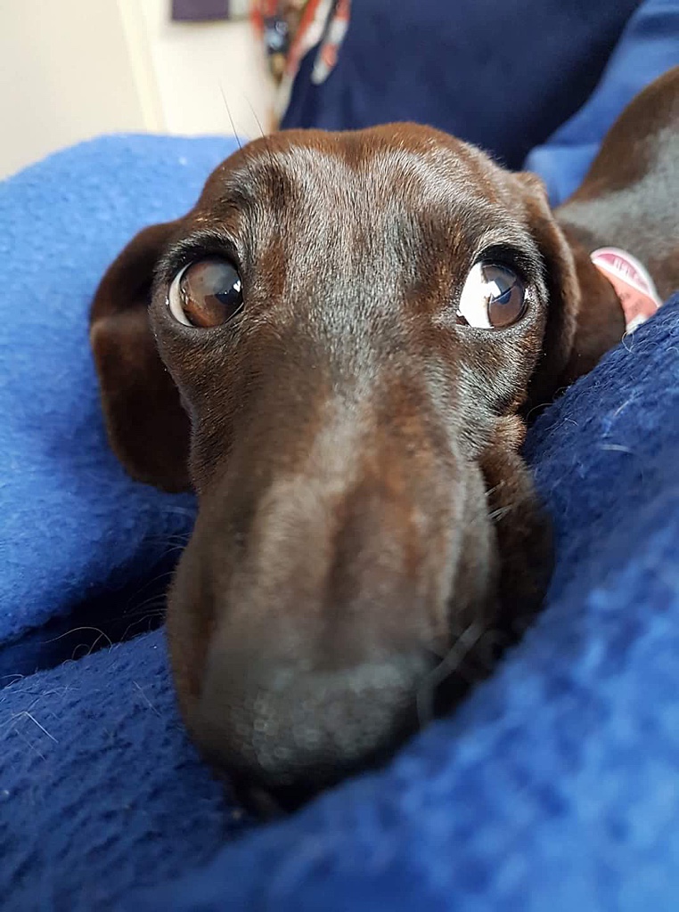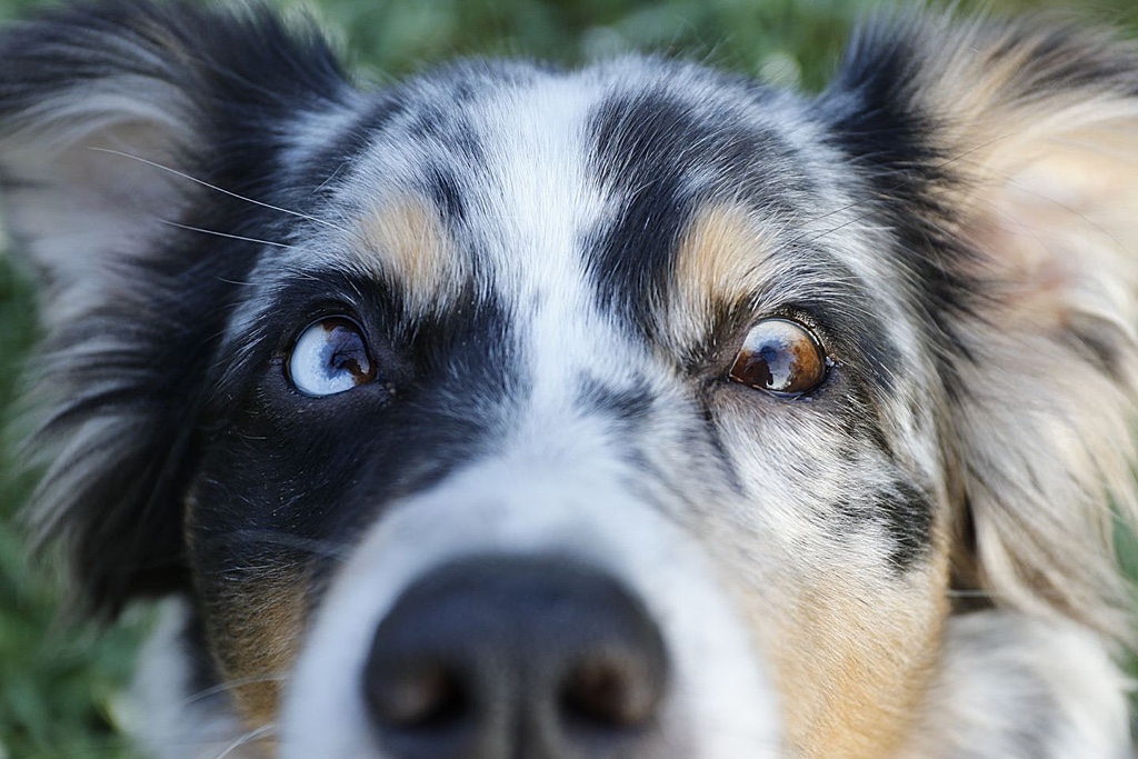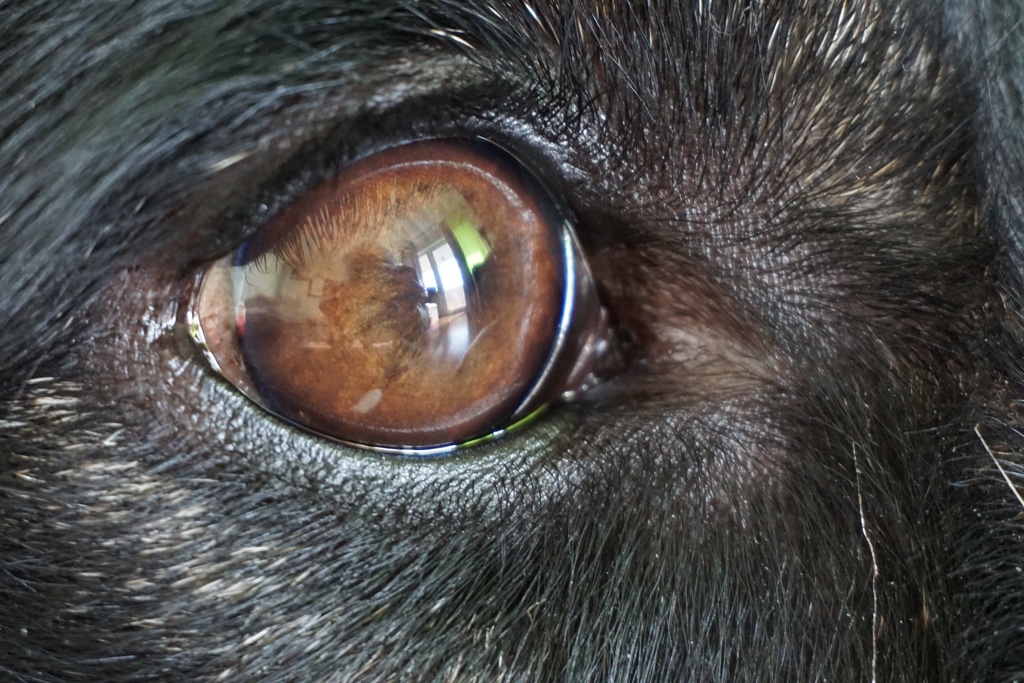 Nicht nur, dass sie einfach wunderbar treu schauen können, nein, die Augen des Hundes sind einzigartig. Wir können in der Dämmerung super sehen, weil wir einfach ein paar zusätzliche Augenlichter anknipsen können und das einfallende Licht verstärkt wird. Während Frauli also fast in den nächsten Laternenmast rennt, sehe ich ihn schon vorher und kann – wenn ich gut drauf bin – Frauli drumrumlenken. Aber wir haben noch viel mehr drauf. Es heißt ja, dass die Augen das Tor zur Seele sind. Also dann schau mal rein und stelle fest, dass die Seele Hunger hat! Noch nie was gegessen hat und überhaupt. Jawoll ja! In dem Moment, wenn du mich anschaust, dann lege ich den Kopf etwas schief und ziehe meine Augenbrauen ein bisschen zusammen, dann tritt mir das Wasser in die Augen und ich sehe soooooo traurig und hilfsbedürftig aus, dass dein Herz schmilzt und du mir sofort alles gibst, was du hast. Wie? Das klappt nicht? Hast du kein Herz? Hmmm… Ach, ich hab vergessen, ich muss noch ein Ohr einklappen. Ich sag doch: Wunderwerk.
