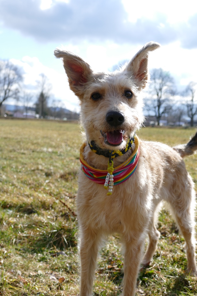 Meine Ohren zeigen aber auch meine Stimmung an. Wenn sie hochaufgestellt sind, dann bin ich meganeugierig und fröhlich. Hab ich die Ohren ein bisschen hängen, dann bin ich zwar nicht schlecht drauf, aber doch vorsichtig. Sind die Ohren angelegt, dann empfiehlt es sich, den Rest von mir anzugucken. Hab ich einen Dackelblick dazu, bin ich unsicher, aber neutral. Hab ich aber ein unverwechselbares Grinsen im Gesicht, würde ich jetzt eher den Rückzug empfehlen. Dann sind die Ohren aber auch so weit angelegt, dass sie quasi gar nicht mehr da sind. Meistens steht aber das eine fröhlich in die Luft, während das andere sich ein bisschen Radarmäßig bewegt und die Umgebung abscannt. Ich sag doch: Wunderwerk.