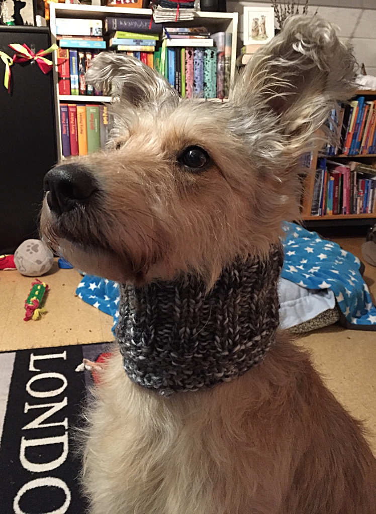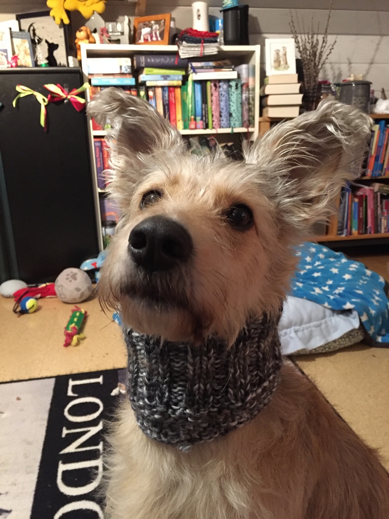 Außerdem hat sich Kerstin noch hingesetzt und für Shiva einen wunderbaren Loop selbst gestrickt, der dank einer Meßanleitung aus dem Sommer perfekt passt. Ich finde das großartig. Selbstgemacht ist immer toll und dann auch noch die raffinierte Idee. Einfach super.