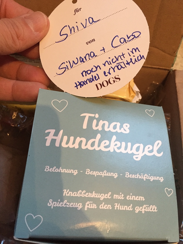 Der Grinseball im Paket war ein Volltreffer. Diese Bälle sind Shivas absolute Favoriten und wir haben schon unzählige verloren. Leider habe ich schon länger keine mehr in einem Laden entdeckt und war jetzt überglücklich Shiva wieder mit einem strahlenden Lächeln zu sehen.